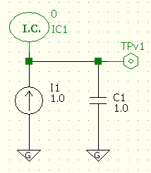 using the initial condition (I.C.) component. The test point TPv1 monitors the