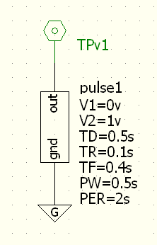 Vpulse out gnd PULSE(0v 1v 0.5s 0.1s 0.4s 0.5s 2s)